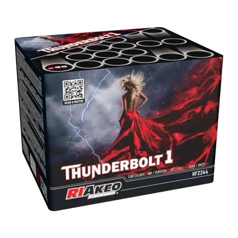 24 shots of Gold willow effects with colourful trumpet pistils ending with loud crackles. Fires in different shapes