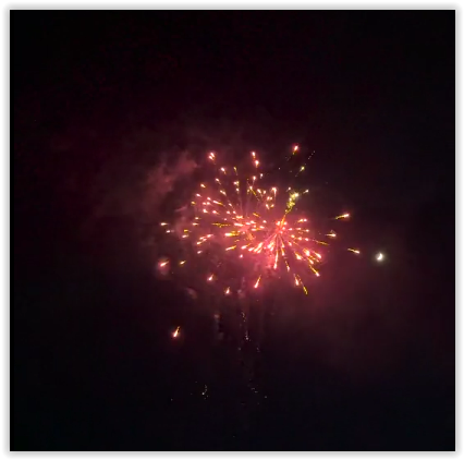 36 shots of alternating crackling stars with pink pearls, orange pearls, blue pearls and lemon pearls all with crackling tails.