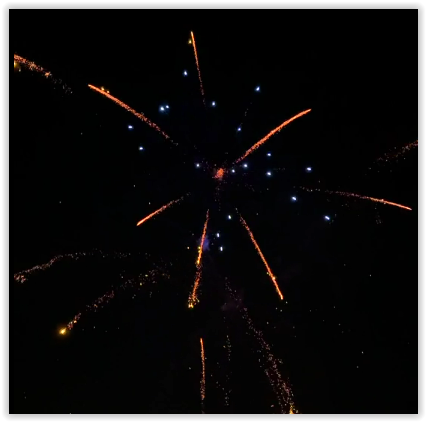 25 shots of gold glittering tails to large bursts of gold glittering willow with blue pearls