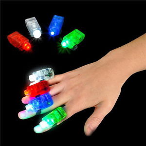Another great fundraiser. Laser finger lights fit onto fingers with the soft silicone bands and have on/ off switches on the top. batteries will last in excess of 6 hours in constant use.
